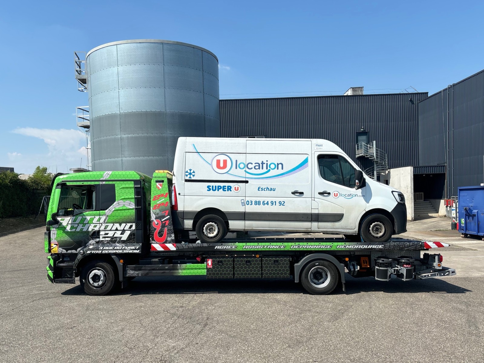 ✅ Véhicules professionnels équipés (voir photo : camionnette U Location remorquée à Eschau)